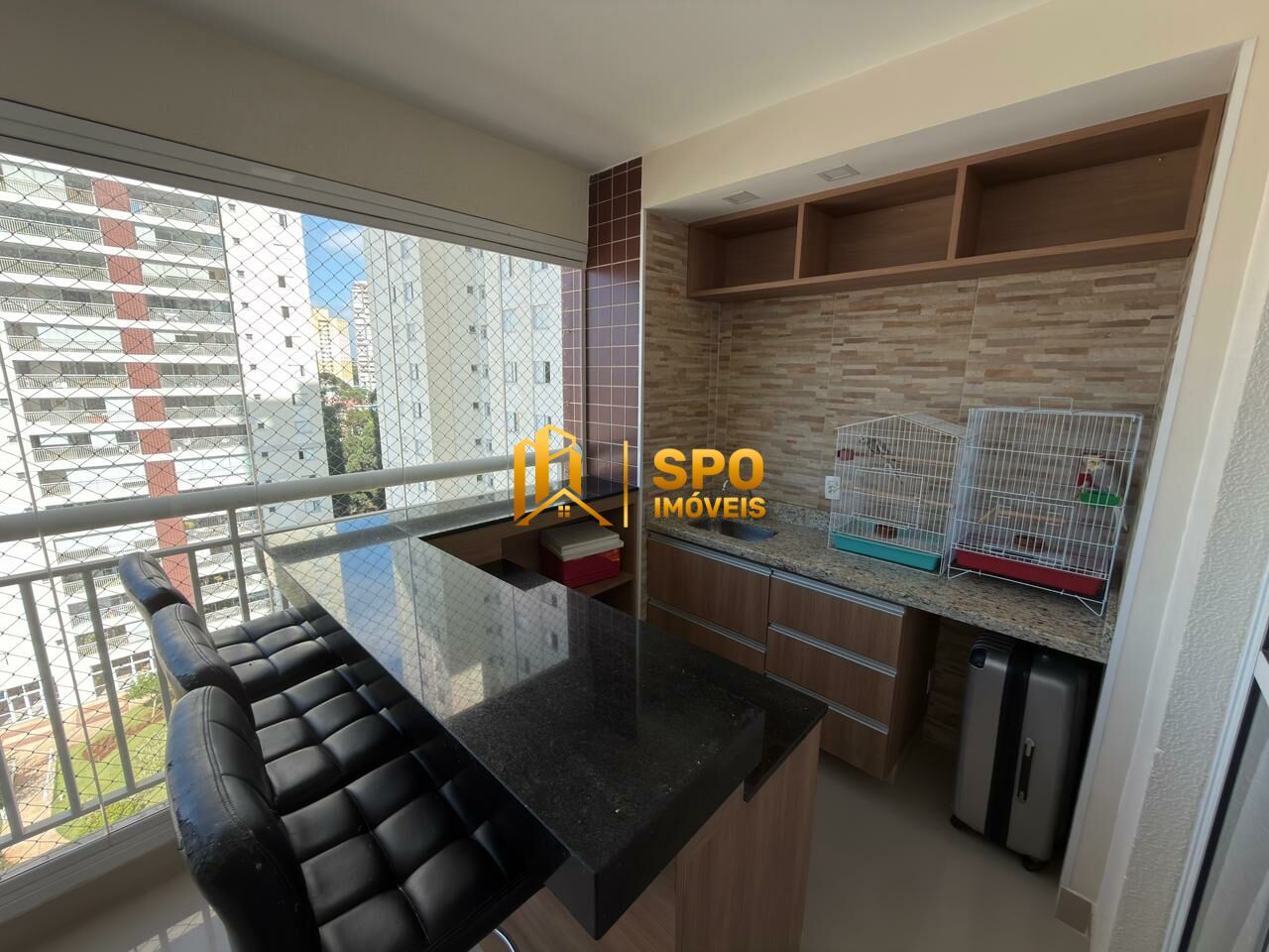 A varanda gourmet é um dos grandes destaques do imóvel, proporcionando um ambiente arejado e agradável, ideal para relaxar e aproveitar bons momentos com vista livre.