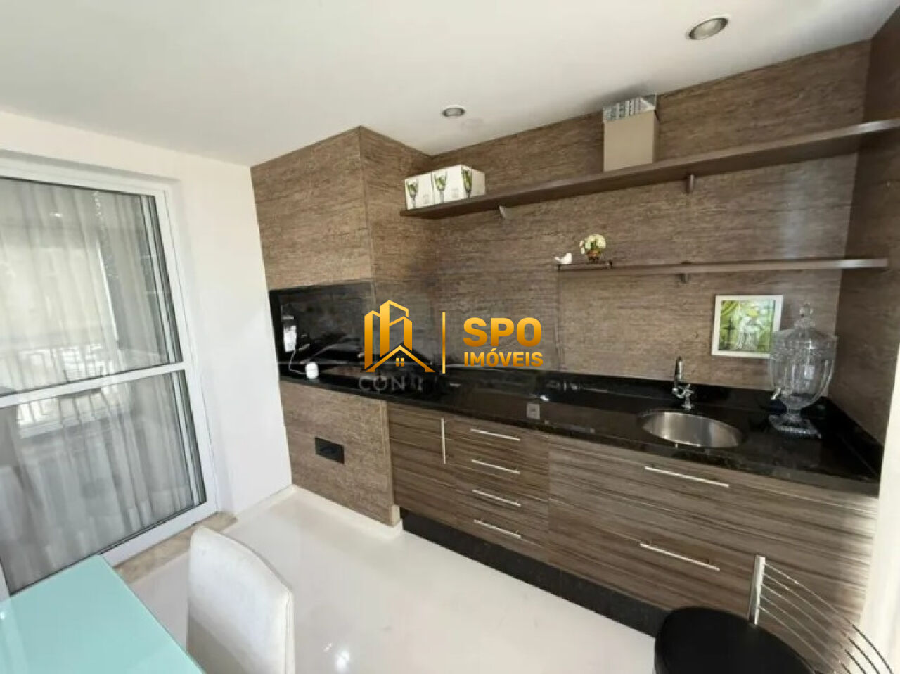 - Varanda gourmet envidraçada com churrasqueira a carvão