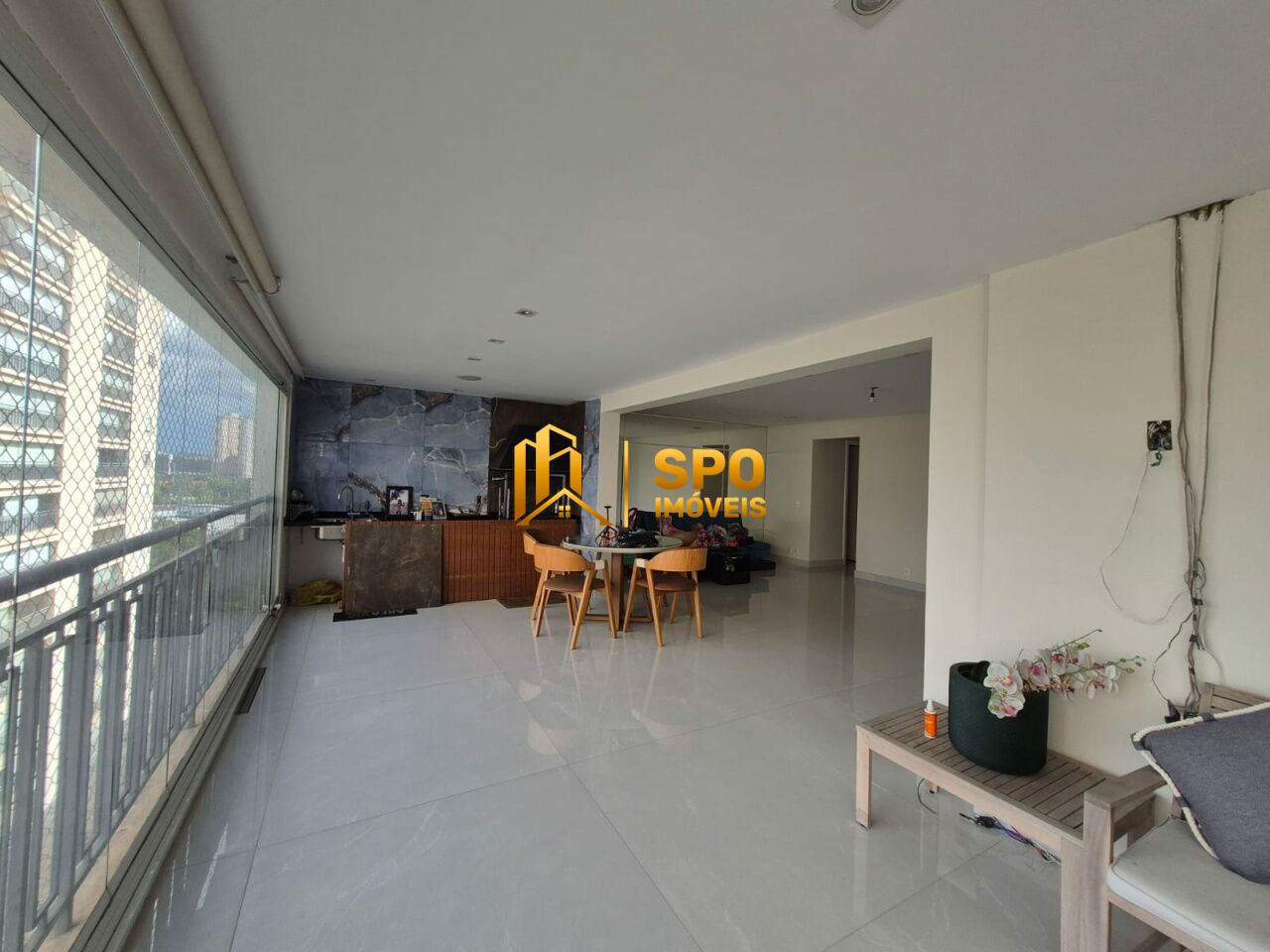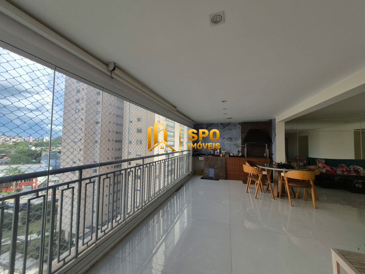 - Varanda gourmet envidraçada com churrasqueira a carvão
